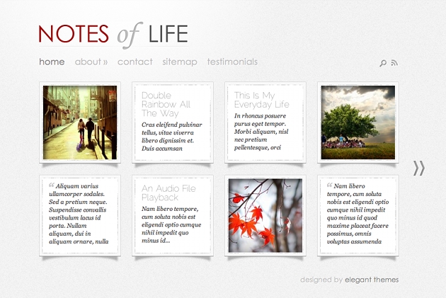 Os templates da ElegantThemes destacam-se pela sua beleza natural, simplicidade e acima de tudo pelos seus pormenores deliciosos. Se ainda não teve a oportunidade de experimentar um desses templates, fique sabendo que eles incluem também um painel administrativo para controlar todas as opções do template, vários esquemas de cores disponíveis, dezenas de shortcodes para realizar acções rápidas, entre uma série de outras opções simplesmente incríveis e de deixar água na boca.