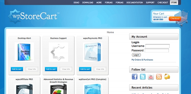 O plugin wpStoreCart é gratuito, open source, e uma solução extremamente completa de e-commerce para o seu WordPress. Este plugin é fácil de usar, consome muito poucos recursos, tem um suporte bastante bom e é regularmente atualizado pelos seus criadores.