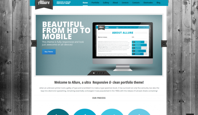 O tema Allure para WordPress é um tema para profissionais criativos e empresas que procuram um tema para destacar o seu trabalho de forma profissional e em grande estilo. O tema inclui uma apresentação flexível e responsiva que se adapta a todo o tipo de dispositivos, desde desktops a smartphones e tablets, integrando também vários widgets de conteúdo, mais de 50 shortcodes diferentes, portfólios ilimitados e muito mais. O tema é facilmente utilizável por criativos, agências, profissionais, designers, artistas, fotógrafos, e muito mais.