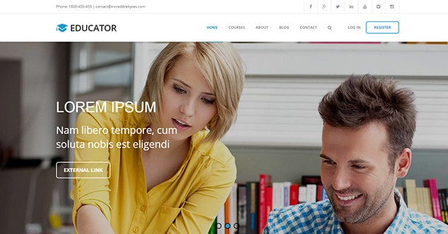 Com um design minimalista e limpo esse Tema trabalha com o conteúdo baseado nos modelos de páginas do WordPress. Oferece uma ampla coleção de shortcodes prontos para uso dentro do conteúdo e também controla as permissões de acesso dos alunos. Fácil de ser atualizado, pois o sistema de personalização de páginas utiliza recursos do próprio WordPress. Faz uso do plugin Educator WP permitindo assim gerenciar facilmente cursos, aulas, participantes, professores, quizzes e alguns outros recursos voltados a educação a distância.