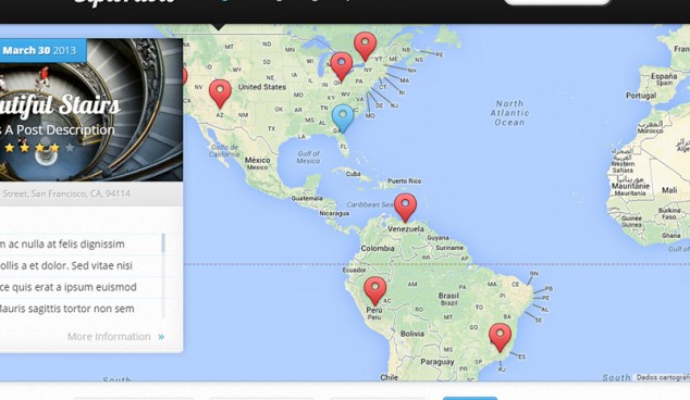 Tema WordPress que utiliza mapas para a localização de conteúdo, onde as publicações feitas podem ser atribuídas a um local do Google Maps. Possui a capacidade de filtrar os resultados com base nas localizações informadas, este Tema é uma excelente ferramenta para construção de blogs de turismo, guias de viagem e outros tantos que possam fazer uso criativo da geolocalização. Permite aos visitantes avaliar os locais diretamente em seu mapa através de uma navegação fluída pelo conteúdo cadastrado.