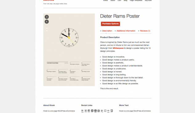 Imagine que você escreveu um Ebook, e esse é o seu primeiro produto no mercado. Você pretende dar o máximo destaque para esse Ebook, e torná-lo no centro das atenções do seu site, sem que o usuário perca o foco no produto. O tema Kiosk E-Commerce para WordPress é uma solução que lhe permite criar isso de forma simples, prática e apetecível, oferecendo um tema de vendas em página única, onde o seu produto é o centro das atenções. No entanto, estão disponíveis também páginas para o carrinho de compras e blog, bem como outras opções que você poderá configurar para tirar o máximo partido do tema e principalmente das suas vendas!